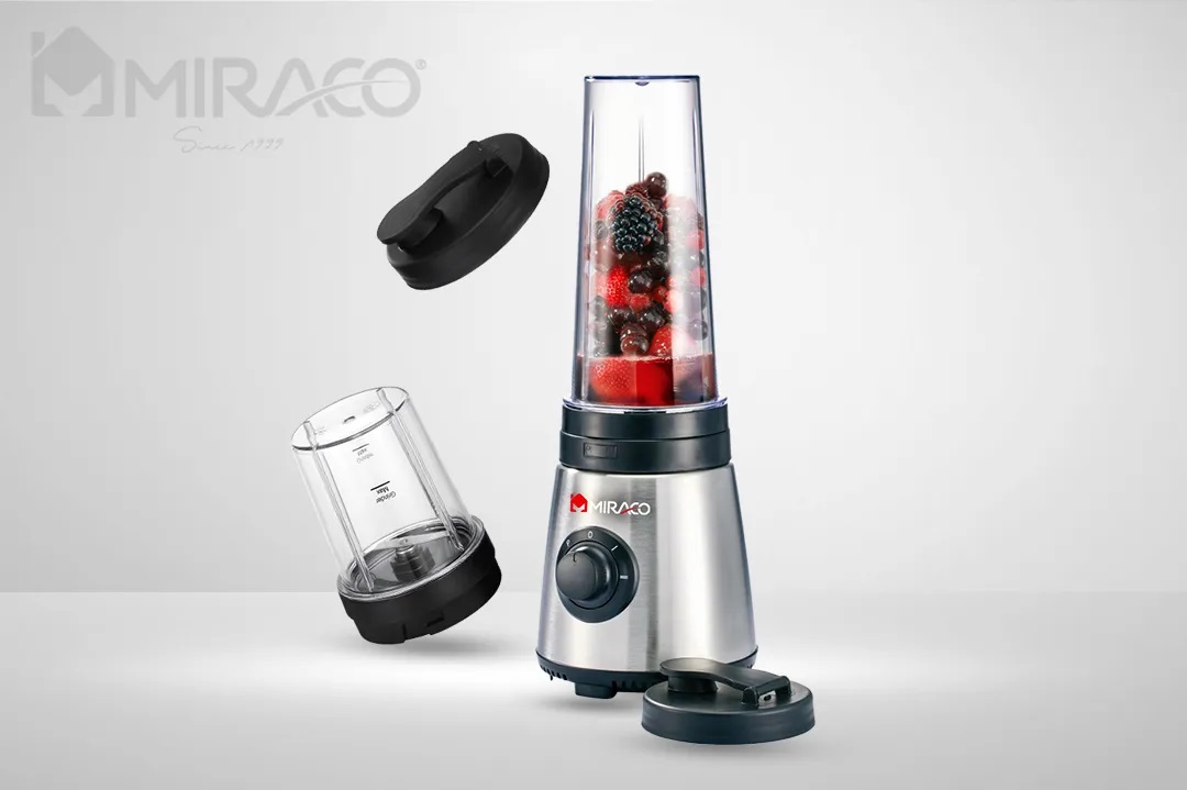 • زجاجة سعة 600 مل للخلط ويتم فصلها عن الخلاط ووضع الغطاء الخارجي المضاف لتصبح كوب.